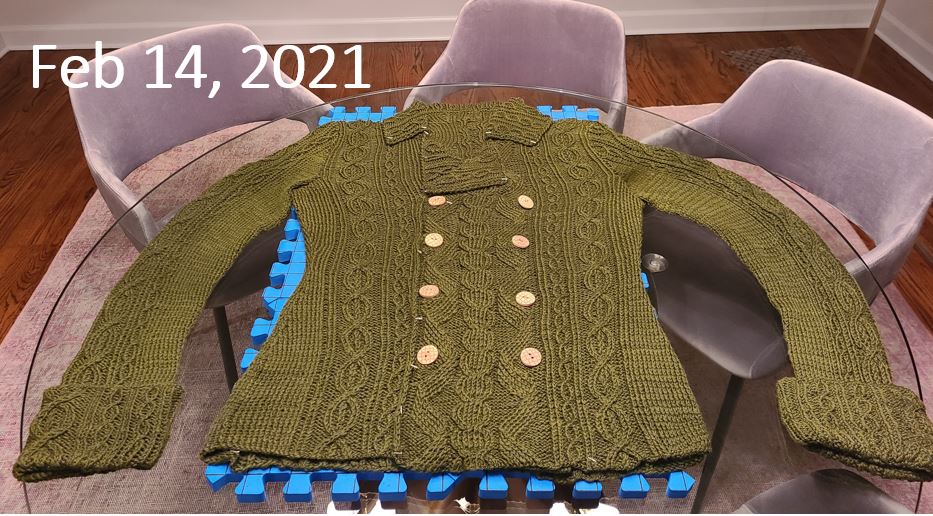 The KAL would have lasted for 16 weeks, till the end of April 2021. But I was possessed by the prize money. I casted on my project on January 9th, 2021 and casted off on February 13th, and was crowned as the winner of First to Complete.