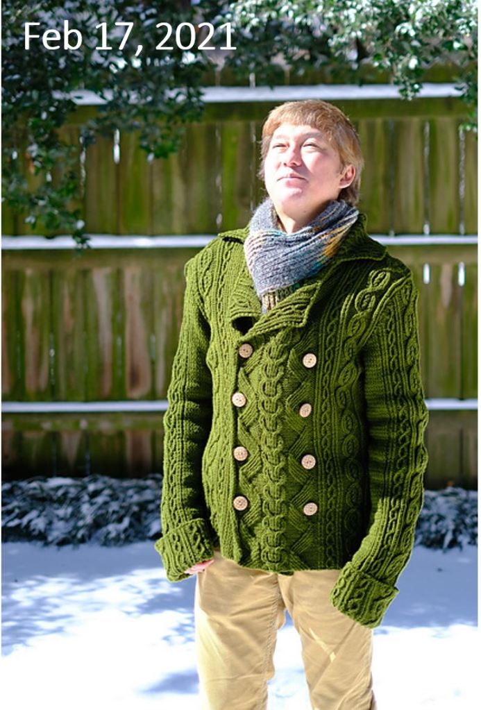I became acquainted with Mari Tobita in 2019 at a knitting meetup, and kept in touch even after I moved to Memphis. When Mari, who is one of Shirley’s protegees, told me about an upcoming KAL (Knit-Along) of Shirley’s cabled Pea Coat hosted by none other than Shirley herself, I was initially hesitant and intimidated.