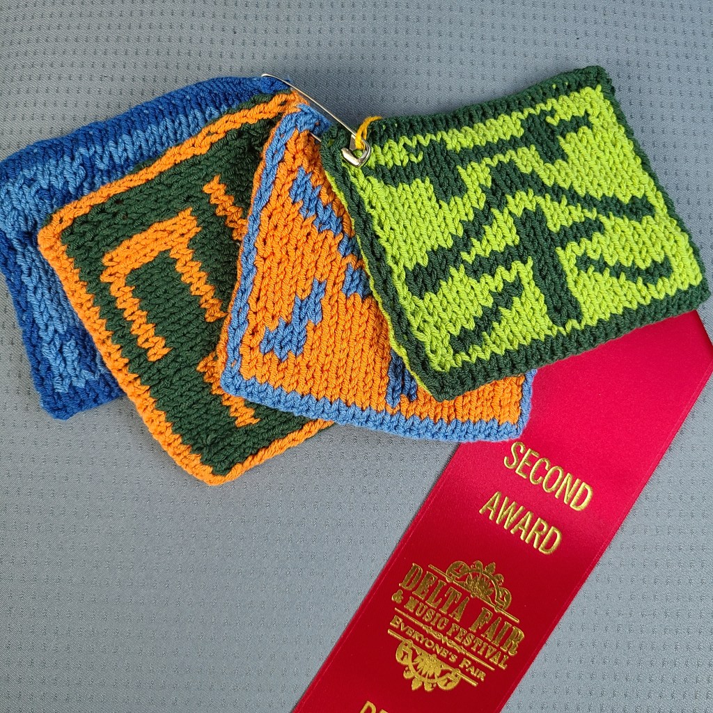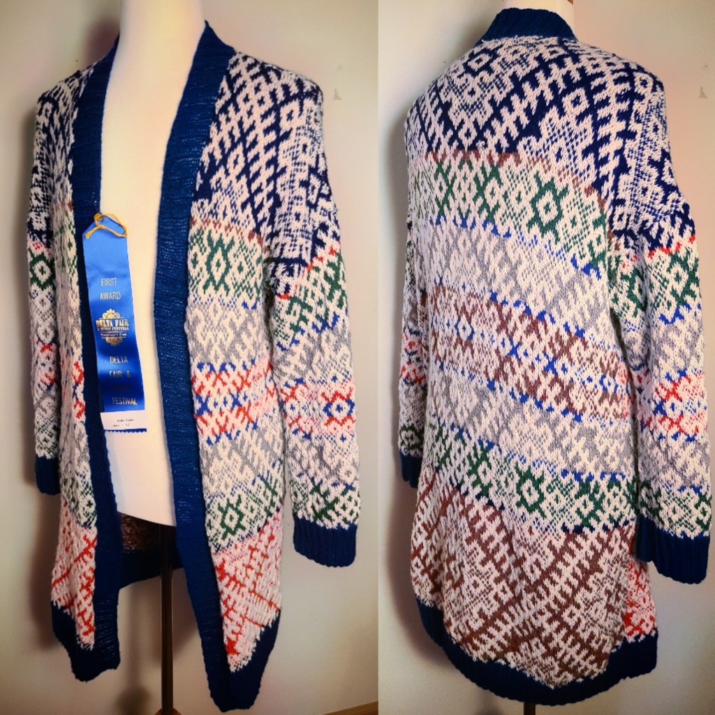 I submitted several knits to Delta Fair & Music Festival in September, 2021 and received some blue and red ribbons. It was great to get some recognition locally. Next year, I will go for Best of Show!