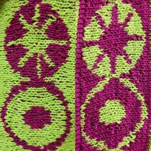 I chose to use Universal Yarn’s Bamboo Pop cotton/bamboo blend. I wanted to convey a light, fun and summery feel using this light-weight yarn. The vibrant fuchsia and lime colors were perfect for it. I alternate main and contrasting colors left/right and front/back for extra fun!