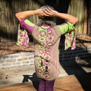 I designed two garments for the show. One is called Kajitsu Kimono Robe.